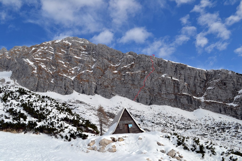 3. Z avtom po cesti proti smučišču Kanin do rampe. Od tu peš po cesti do postaje C in gor pod steno; poldruga ura.