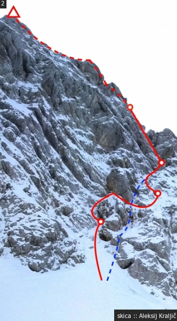 Na silvestrovo sta Aleksij Kraljič in Jernej Rijavec (oba AO Nova Gorica) v severovzhodni steni Bavškega Grintavca preplezala novo smer.