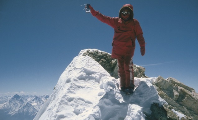 Fotografija: Nejc Zaplotnik na vrhu Everesta 13. maja 1979, foto Andrej Štremfelj.