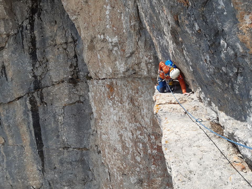 Plezanje izstopne prečnice "Hov-hov" v Kamniški smeri v Koglu. Foto: Tomaž Jakofčič