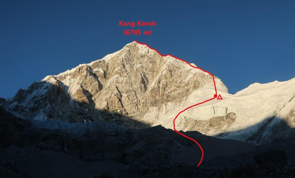 - prvenstvena smer po južnem grebenu na Kang Korob/ Khang Kharpo/ Ripimo Shar: Kranjski greben: 6705 m (GPS 6641 m), UIAA IV, 75°, 1300 m.
