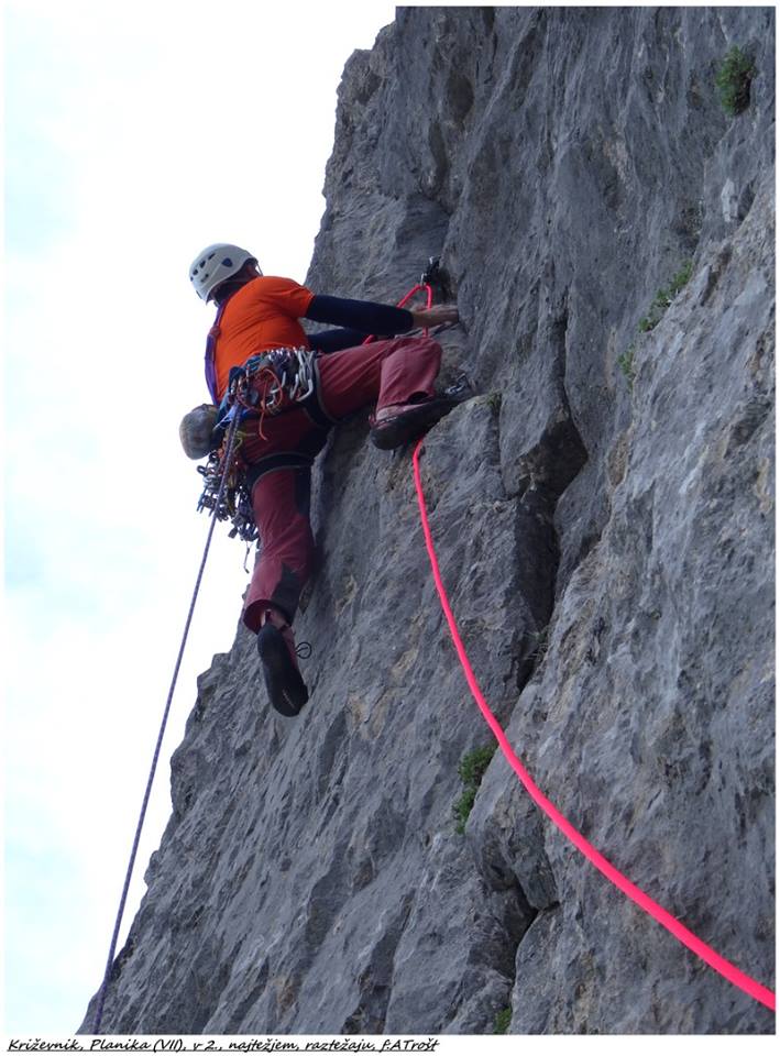 Albin Simonič (AO Celje) in Andrej Trošt (Posavski AK) sta v Križevniku ponovila smer Planika (VII, 350m). Vzpon jima je uspel np/fleš.