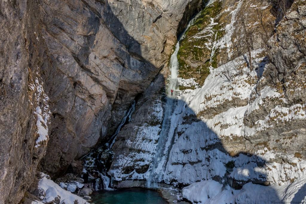 Borut Gogala in Klemen Kocjanc (oba AO Bohinj) sta, kot se za lokalce spodobi, zaznala ugodne razmere za vzpon po verjetno najbolj znanem slovenskem slapu - Savici.