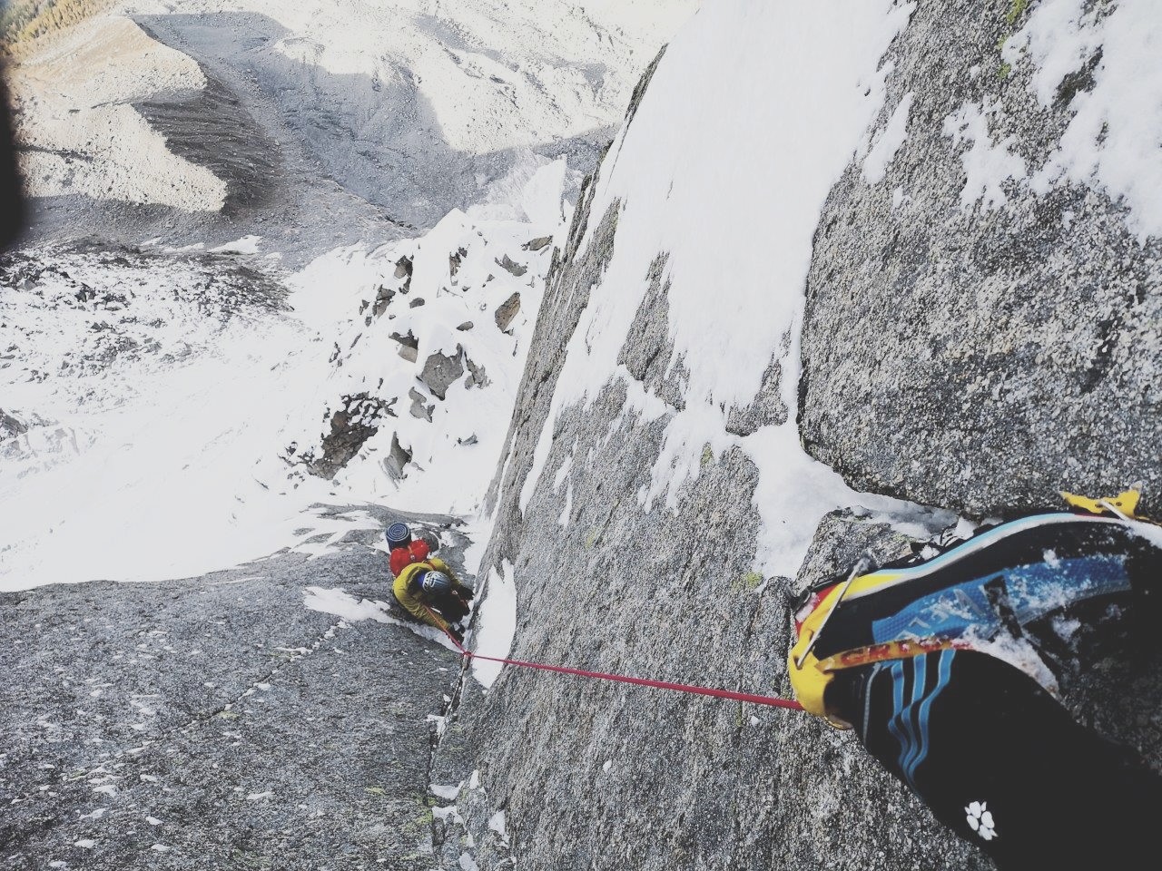 Frendo spur, Aiguille du Midi, D, 5c, M5+, III, 1000 m; Matic Štrancar, Krištor Fortuna, Nejc Marčič