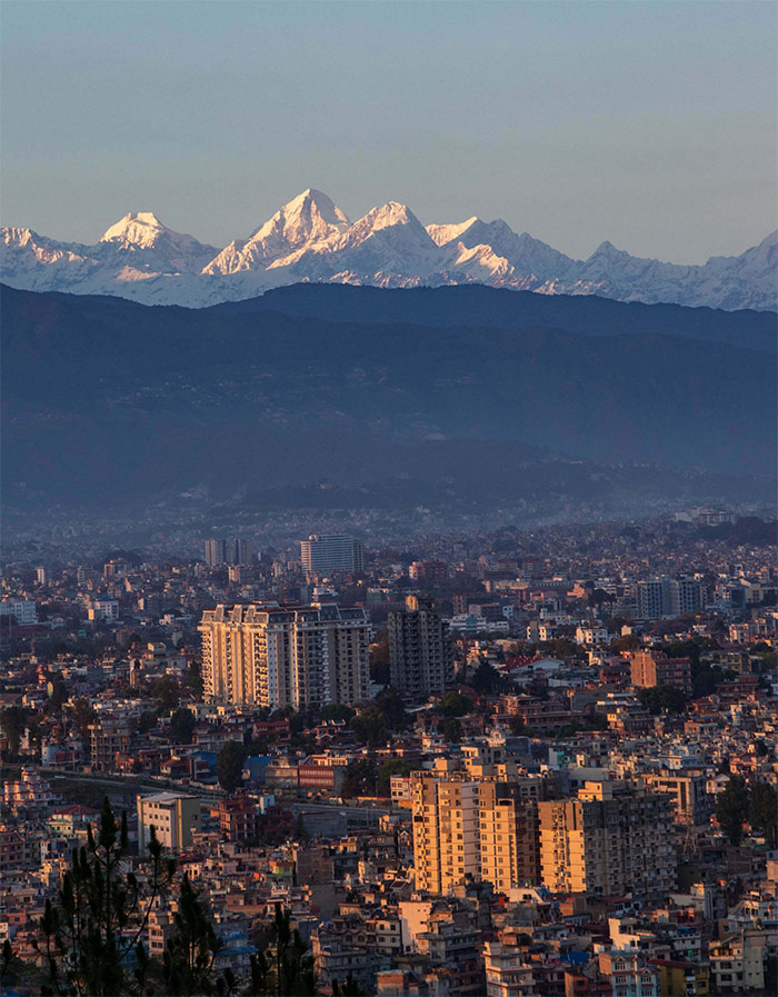 Vedno večje mestno širjenje doline z Gang Chhenpo, Urkinmang, Kangshrum, Gurkapo Ri, Dorje Lakpa, Lonpo Gang, Gyalzen Peak in Phurbi Ghyachu 50 km stran proti severu.