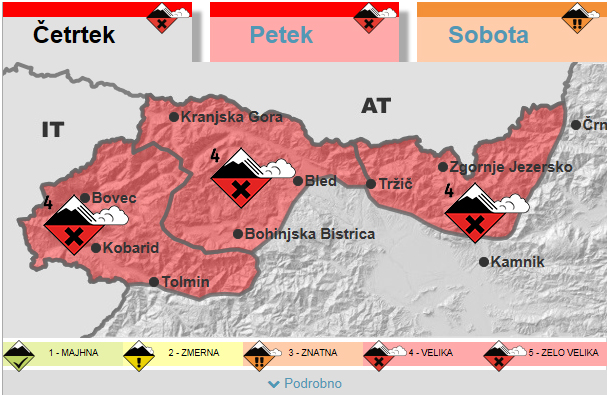 Nevarnost je 4. stopnje po evropski petstopenjski lestvici - VELIKA.