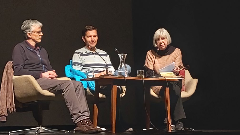 Višek četrtkovega večera pa je bil pogovor profesorice Ivane Slamič z gostoma Bogdanom Biščakom in Igorjem Škamperletom alpinistoma, člana znane postojnske naveze, pisateljema in še marsikaj Ob poslušanju življenjskih zgodb in predvsem jasnih in premočrtnih misli je ura prekoračila vse predvidene čase. Prijateljski pogovori so se nadaljevali ob pogostitvi še pozno v noč.