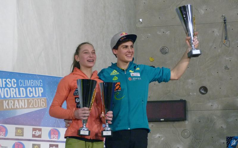 Janja Garnbret in Domen Škofic sta v Kranju na zadnji tekmi za svetovni pokal v težavnosti dvignila pokal za najboljšega oz. najboljšo v skupnem seštevku svetovnega pokala v težavnosti za sezono 2016. Janja je bila najboljša tudi v skupnem seštevku v kombinaciji. Slovenski plezalci so bili z izjemno sezono najboljši tudi v pokalu narodov. Zmagali so pred Francijo in Avstrijo.