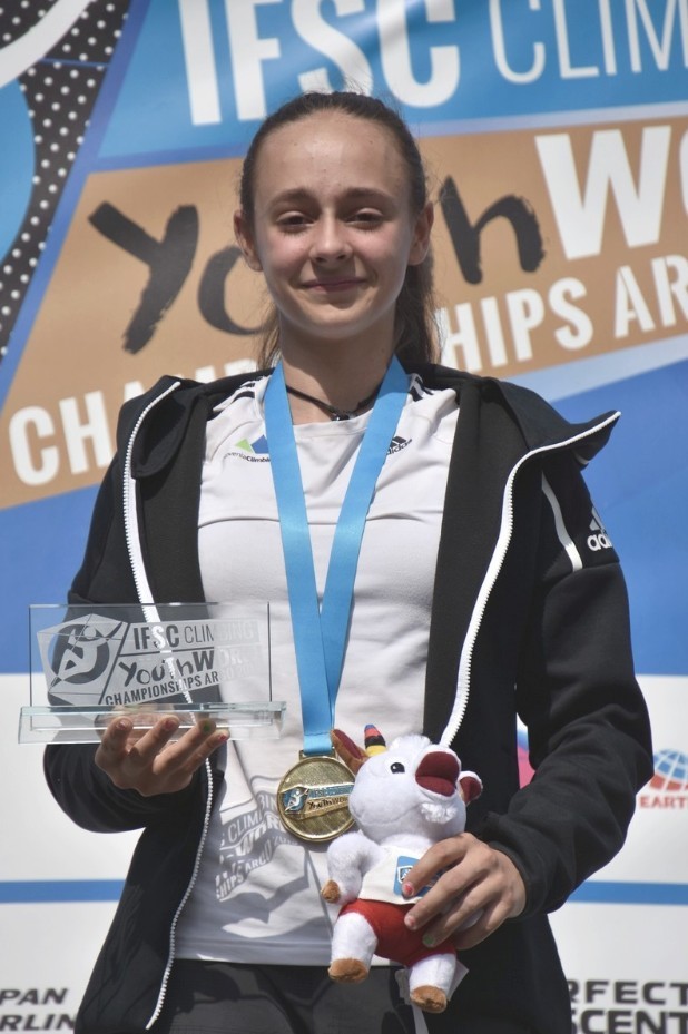 Sara Čopar, članica športnoplezalnega odseka Planinskega društva Celje - Matica, si je zmago priplezala z osebnim hitrostnim rekordom v disciplini hitrost. 15-metrsko standardno postavitev je prvič preplezala pod 10 sekundami, kar ji je odprlo vrata do naslova najboljše mladinske olimpijske kombinatorke v kategoriji starejših deklic (starost 14 in 15 let). Zlato si je tako priplezala s skupnim petim časom v hitrosti ter z devetim mestom v težavnosti in dvajsetim v balvanih.