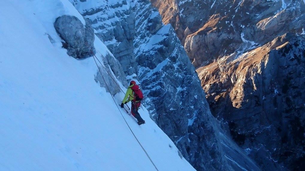 Nemška smer, Triglav - 1100 m, IV-, M4, do 80 stopinj, plezala Boris Strmšek Strmina in Jože Vozelj dne 18.decembra 2016.