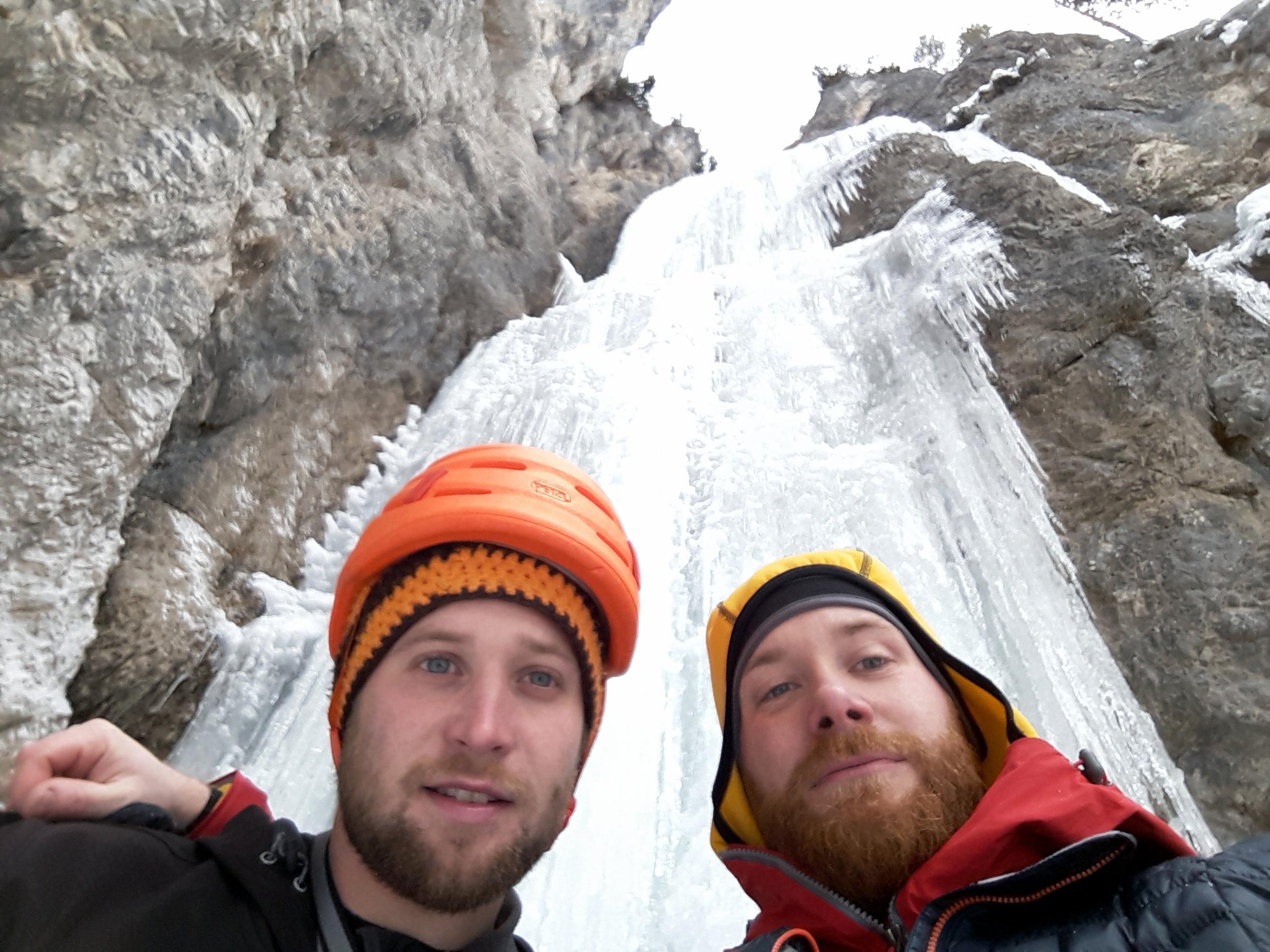 Rok Tičar (AO Kranj) in Gregor Klančar (AO Novo mesto) sta 16. januarja plezala Krokarjev slap (5+, 100m).