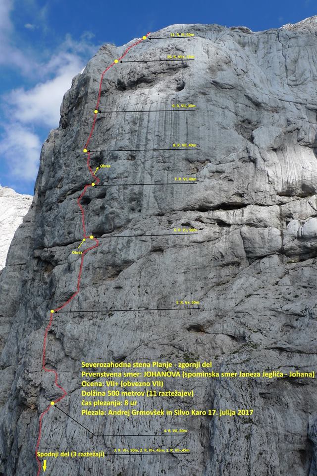 Prvenstvena smer: Johanova (spominska smer Janeza Jegliča - Johana)