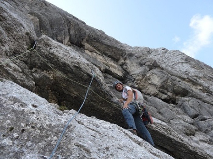 V Trapezu Velikega Draškega vrha nad Krmo sta Miha Zupan (AO Tržič) in Miha Zupin (AO Kranj) opravila drugo ponovitev smeri Poti do sonca (VI+/V-VI).