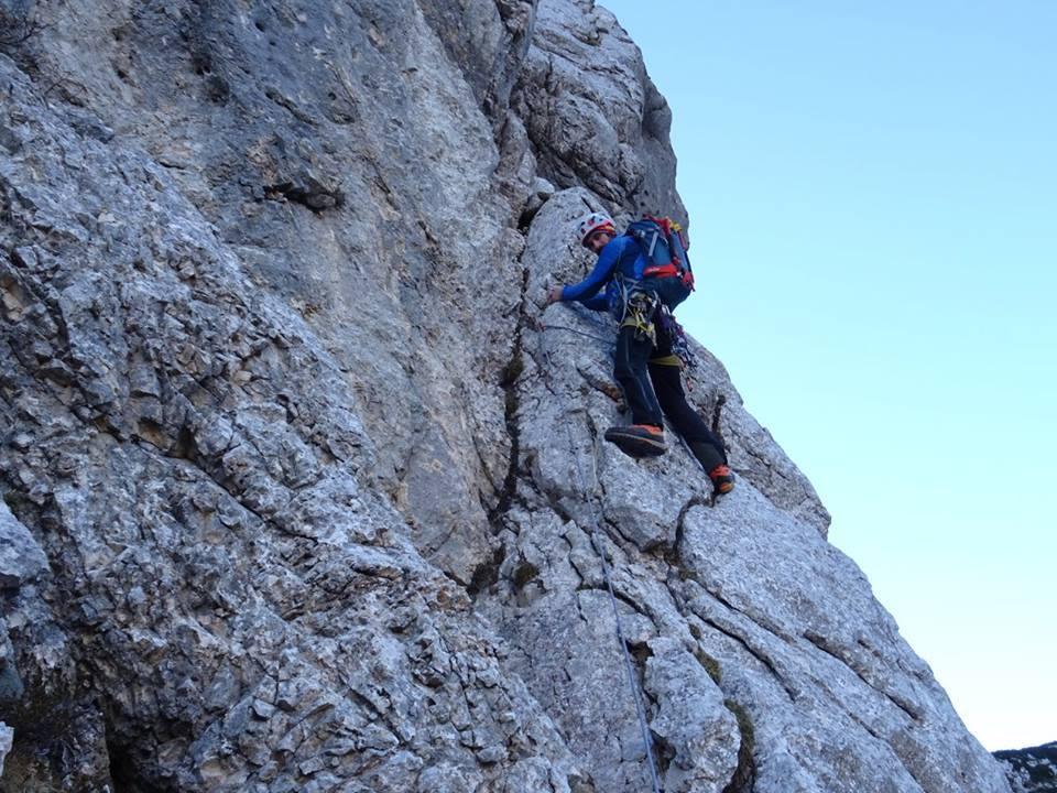 Tine Cuder (AO Bovec) Florian Erlah sta včeraj splezala Severozahodni steber v Srebrnjaku nad planino Zapotok.