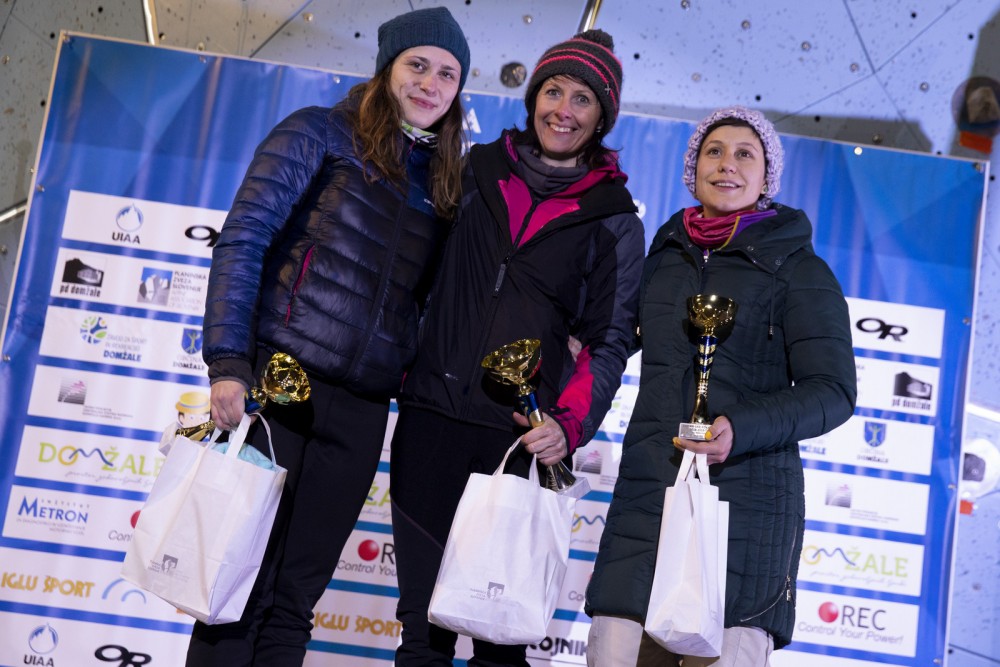 V ženski konkurenci se je v za gledalce zelo atraktivni smeri najbolje znašla Švicarka Sina Goetz, ki se je s cepinom dotaknila vrha finalne smeri in za sabo pustila drugouvrščeno rojakinjo Vivien Labarile, tretja pa je bila Francozinja Marion Thomas. Tik pod stopničkami je domžalsko tekmo končala Slovenka Maja Šuštar (AO Domžale), ki jo je na poti proti vrhu ustavil nerešljivi rebus premikajočih se ledenega sodčka in lesene ledene sveče. "Letos je bila konkurenca malce manj ostra, pogrešali smo nekaj lanskih finalistk EP z zmagovalko Angeliko Rainer, tako da uvrstitev v finale ni bila tako zahtevna, kot je bil težaven naskok na stopničke, kar pa mi ni uspelo, to ostane za drugo leto. Težavni del je bil prehod čez ledena sodčka, ob ogledu smeri sem mislila, da bom s prvega soda napredovala na oprimek, ko sem bila tam, pa sem ugotovila, da ne bo šlo. Odločila sem se za improvizacijo, ki pa je nisem imela izdelane v glavi in ni šlo naprej. Z današnjim nastopom sem zadovoljna z vidika, da sem dala od sebe res vse, napredek opažam predvsem na tehnični ravni, bi pa lahko izboljšala še kondicijsko pripravo, a imam širok spekter dejavnosti, zanimajo me še športno plezanje in hribi, kar kombiniram še s službo in družinskim življenjem," je ocenila plezalka iz Tuhinjske doline, v Domžalah zmagovalka sklepne tekme 6. slovensko-hrvaško-srbskega pokala in že drugo leto zapored skupna zmagovalka v balkanski konkurenci: "Dekleta znotraj SHS-pokala so zelo napredovala, z mojo glavno tekmico Katarino Manovski iz Srbije sva imeli letos zelo izenačene boje, kar je dobra motivacija tudi za naprej."