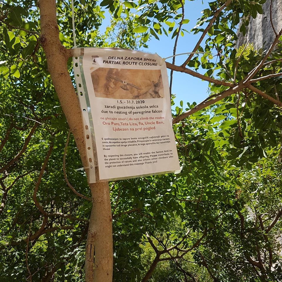 Območna enota Piran Zavoda RS za varstvo narave sporoča, da v plezališču Mišja peč potrjeno gnezdi sokol selec.